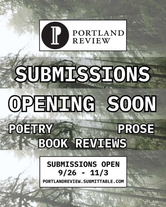 Beginning Friday, September 26, Portland Review will be open for submissions in Poetry, Fiction, Creative Nonfiction, and Book Reviews. The window for submission will close on Monday, November 3, but we may close the submission…