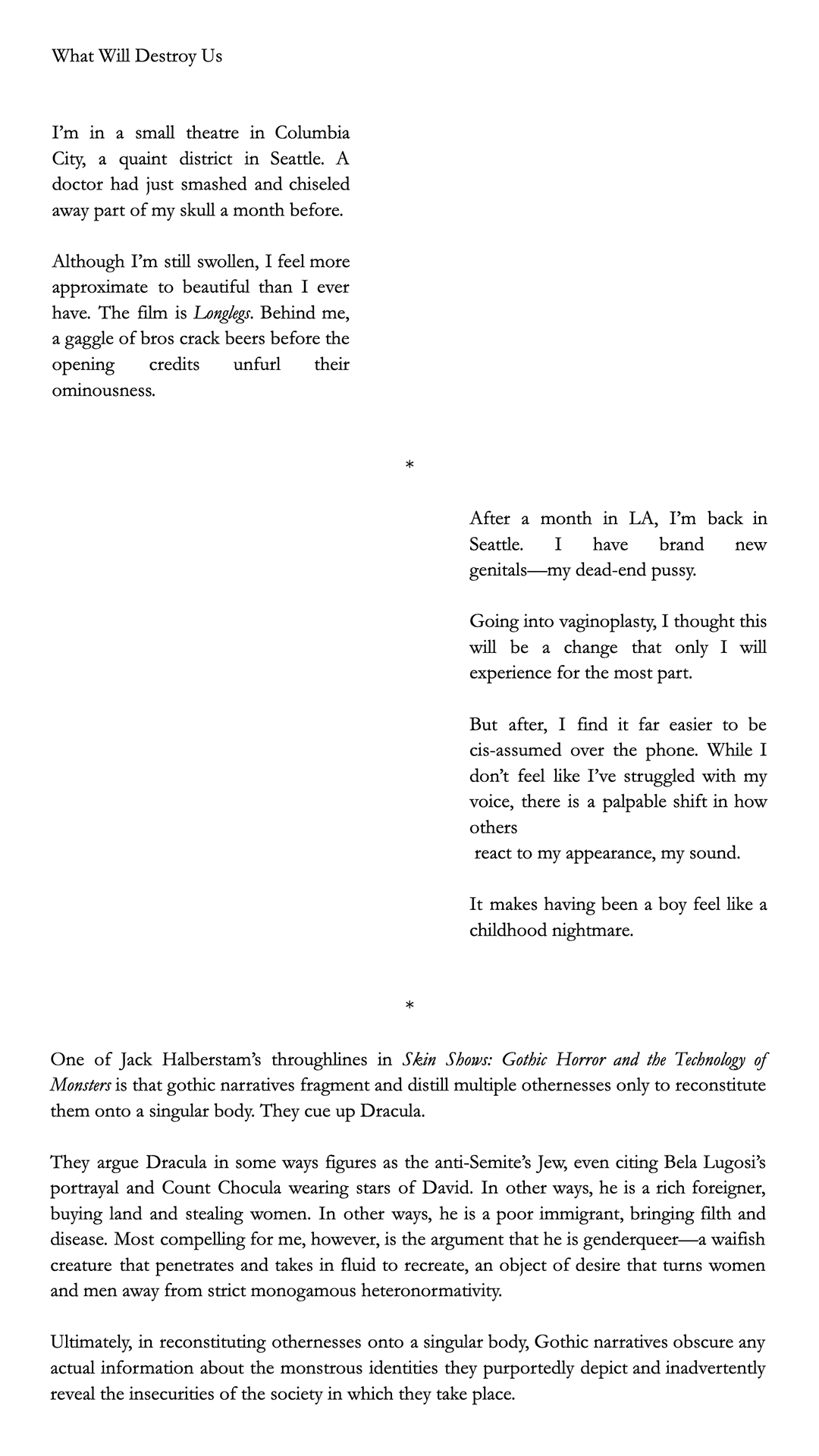 What Will Destroy Us in Nonfiction Winter 2026 on January 14, 2026 January 14, 2026 Share Facebook Twitter Pinterest Google+ Email Photo by Hulki Okan Tabak on Unsplash Share This Previous Post← The Waves The Waves You May Also Like Poetry Winter 2026 The Waves View Post Fall 2025 Nonfiction Jigsaw Leaves View Post Nonfiction Spring 2025 Friday Night Videos View Post